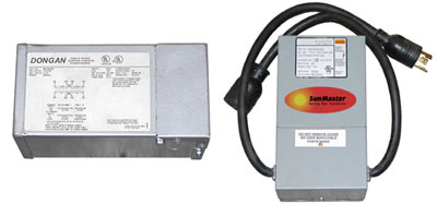 This is a large box (1' x 1' or similar) that changes the incoming voltage to the tanning bed. They cost around $150 or more, and are generally only required in choke style electronics systems. They will step up (or drop) the incoming voltage to maintain an end voltage between 220V and 230V. Below are two examples of transformers: