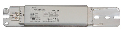 European style electronic system. Designed to run only with AC power from 220v to 230v. Since most current in the USA is either 240v (single phase) or 208v (three phase), beds with this electronic system require a BUCK BOOST TRANSFORMER in order to operate correctly. This generally adds another $150 to the price of installing a tanning bed that uses choke ballasts. Because choke ballasts are the cheapest to manufacture, they are the most commonly used electronic system. All beds that use choke ballasts MUST use lamp starters. Below is a 100W choke: