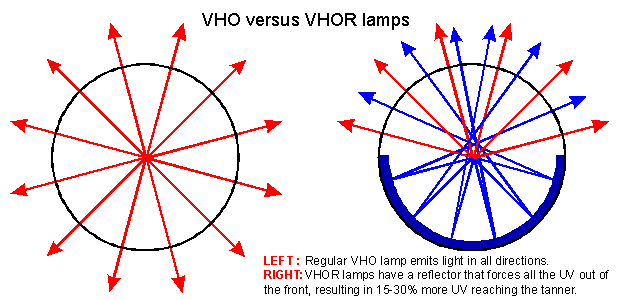 Name used by other companies for lamps that are similar to VHR. Since VHR is a trademarked name, only Cosmedico can legally use that term to describe their 160w reflector lamps. This images shows the difference between VHO and VHOR.